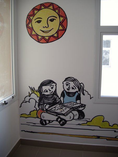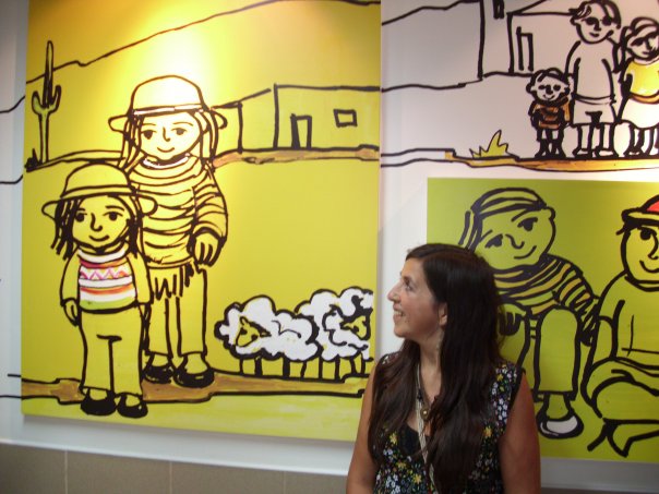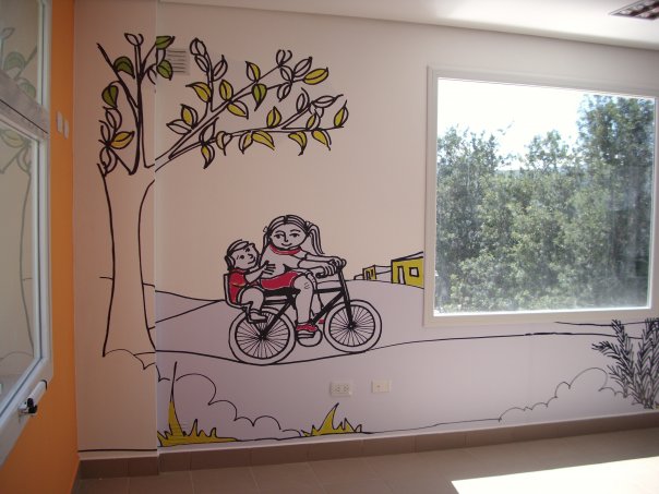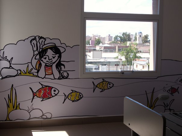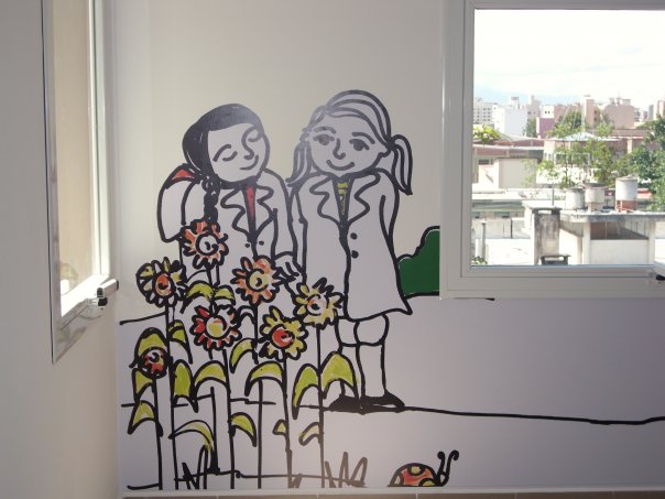 Se puede destacar como parte de su labor artística, las intervenciones realizadas en el Hospital de Niños de nuestra capital , en donde se puede observar su preocupación por generar en los niños un espacio de contención y acompañamiento con valores de fraternidad e igualdad.